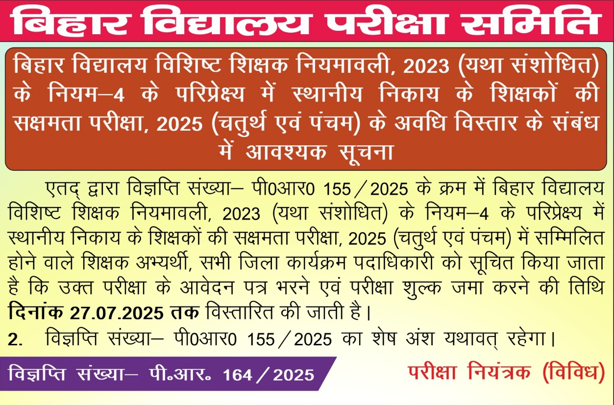 Bihar BSEB Sakshamta Pariksha Phase 4th & 5th Recruitment 2025 (Re-Open)